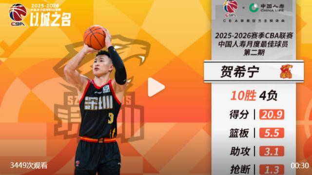深圳男篮本土核心贺希宁在第10-23轮比赛中,帮助深圳男篮取得10场胜利。贺希宁场均出战34分钟,能够得到20.9分、5.5篮板、3.1助攻、1.3抢断的全面数据,投篮命中率接近50%,并且能够以42.3%的三分命中率,场均命中3.1记三分。